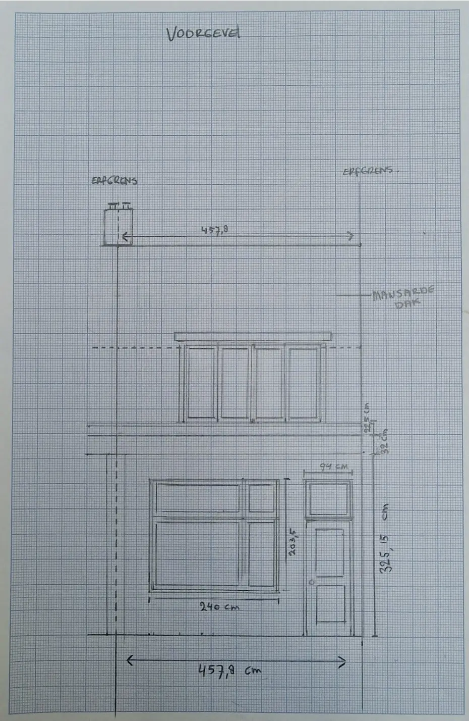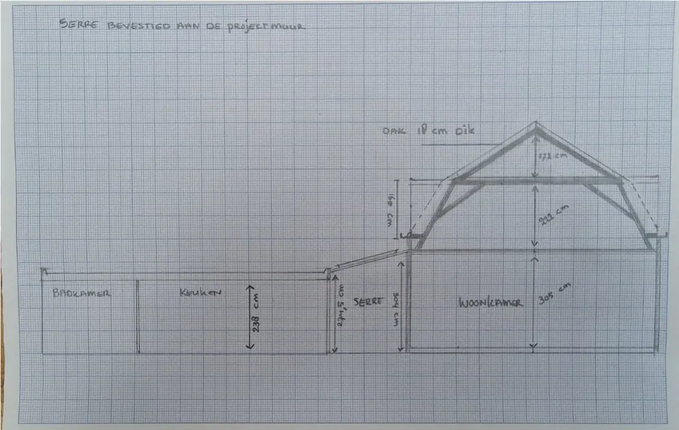 - Daarna ga je verder met de geveltekening(en). Schets iedere gevel en schrijf ook hier alle maten op.
